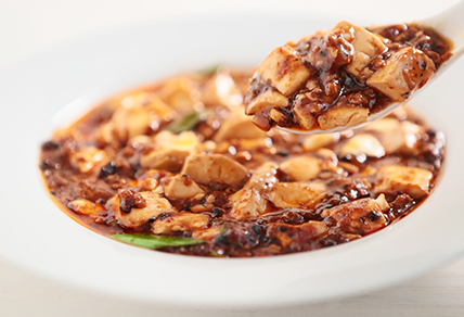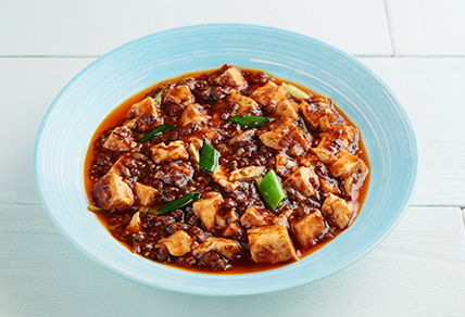 カレー風味と和歌山県有田の「ぶどう山椒」の香りが融合した、多国籍な味わいの麻婆豆腐。親しみやすい味で幅広い層に人気です。